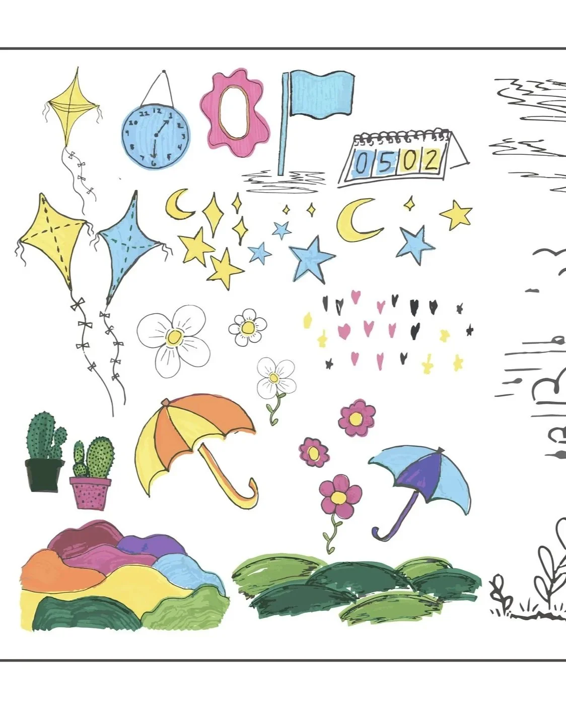 and personality, mimicking doodles in notebooks or margins of schoolwork. Cutout